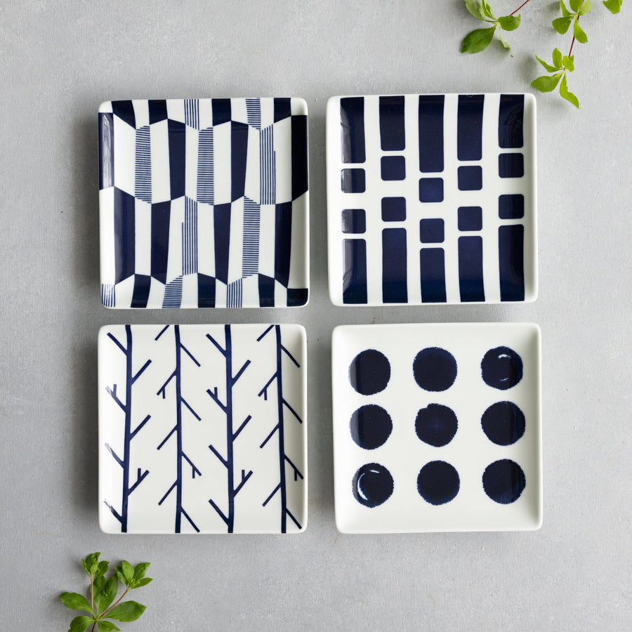 Modern Japanese Style Marine Square Side Plates Set of 2