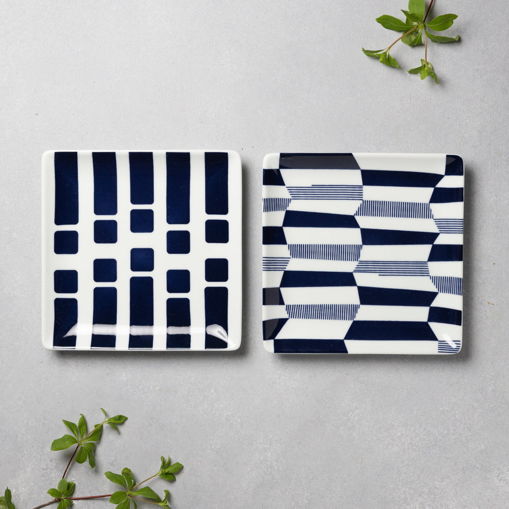 Modern Japanese Style Wa Pattern Square Side Plates Set of 2