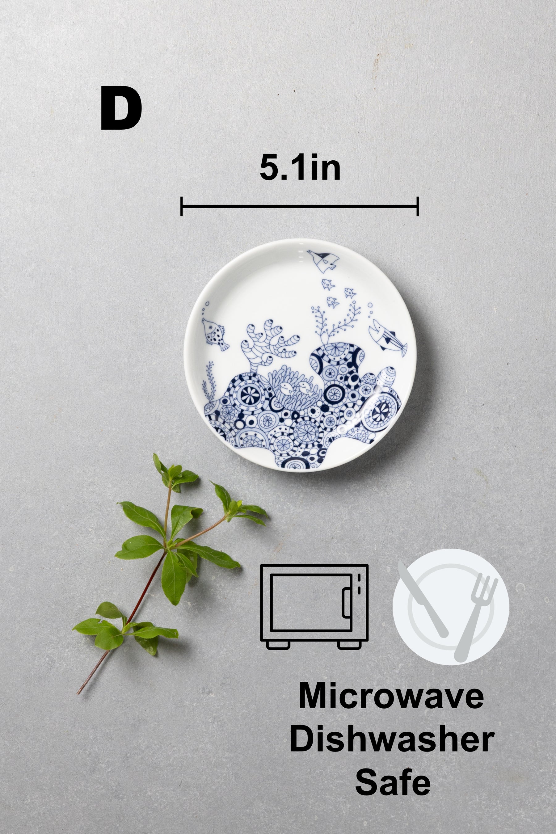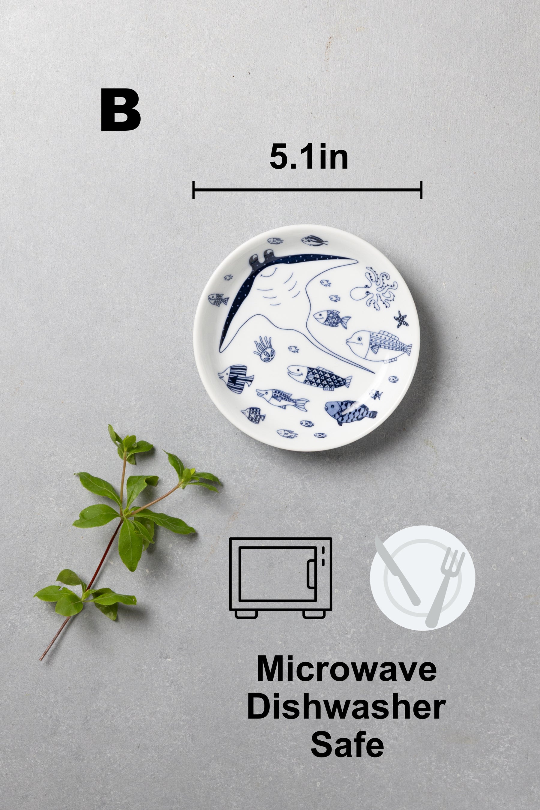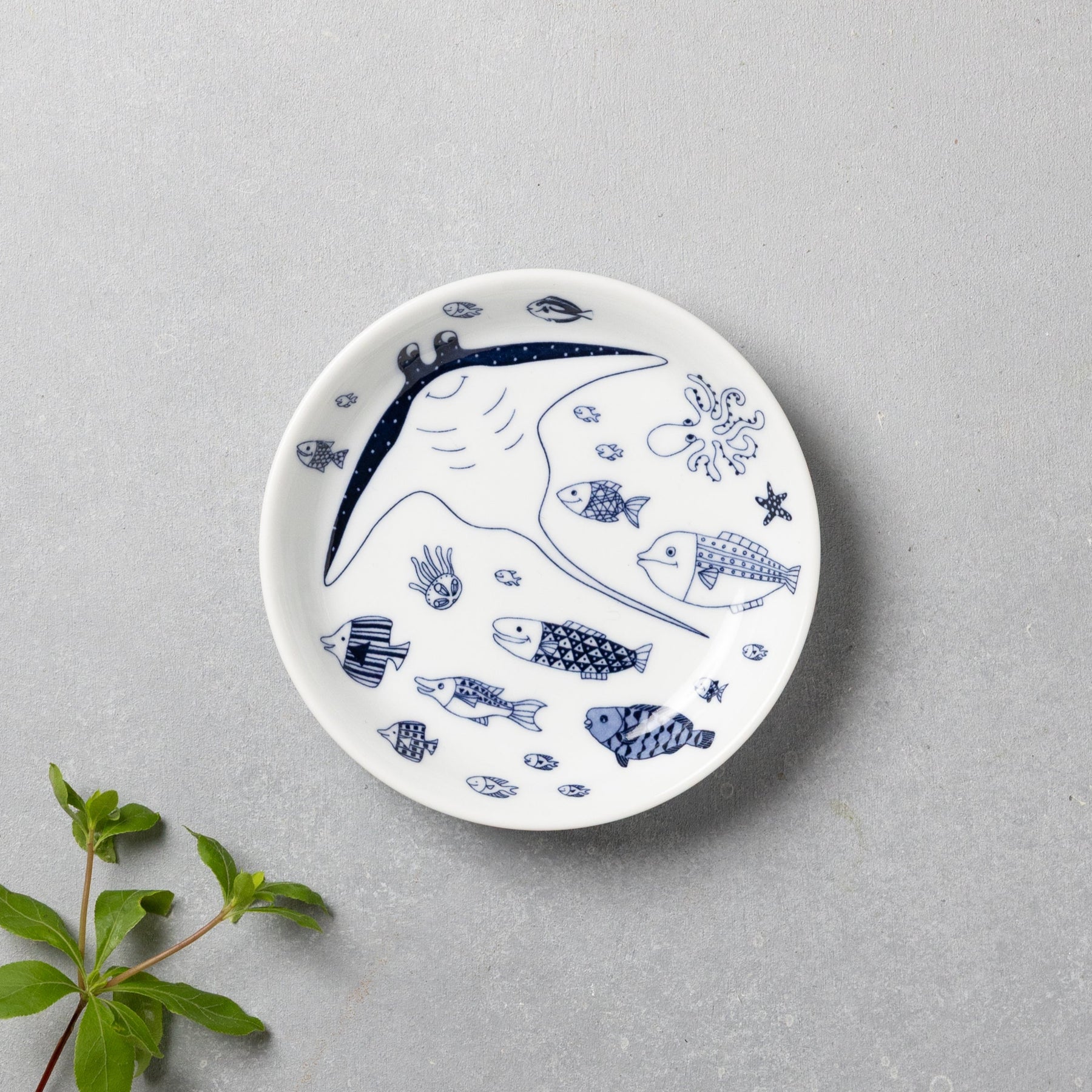 The Marine Series features charming and playful sea creatures swimming joyfully. Japanese ceramic designer Keiko designed this plate based on the scenes she actually observed underwater. This plate gives you the feeling of swimming together with the fish! Perfect for serving small appetizers, snacks, or gourmet bites, these plates bring a fun atmosphere to your table setting.
