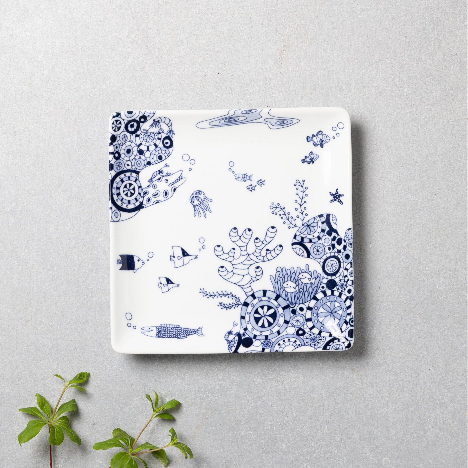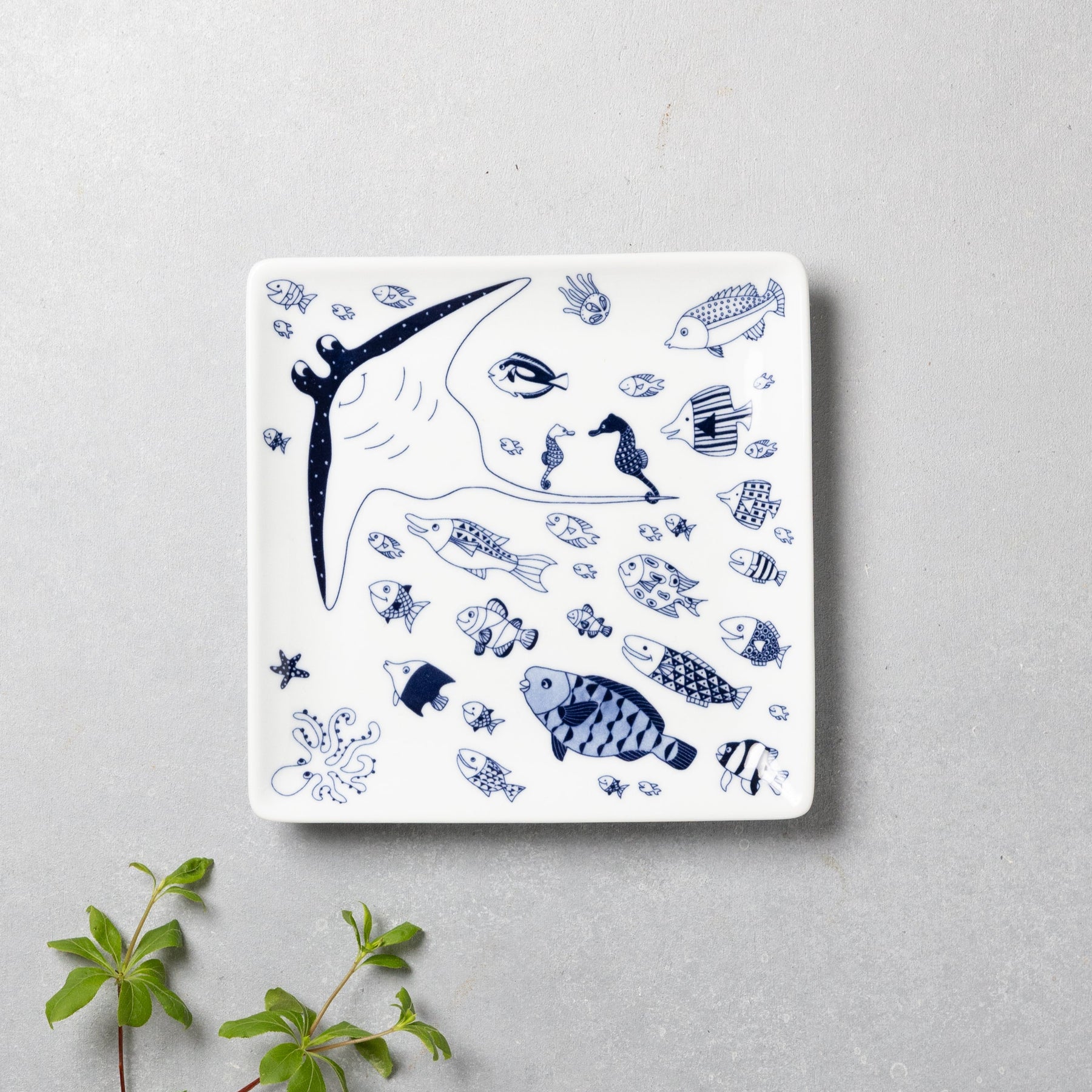 The Marine Series features charming and playful sea creatures swimming joyfully. Japanese ceramic designer Keiko designed this plate based on the scenes she actually observed underwater. This plate gives you the feeling of swimming together with the fish! Perfect for serving appetizers, snacks, or desserts, these plates bring a fun atmosphere to your table setting.