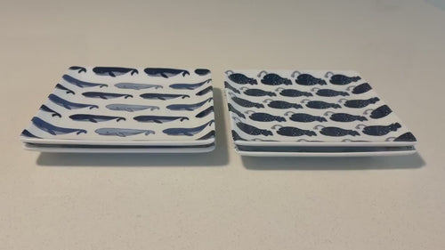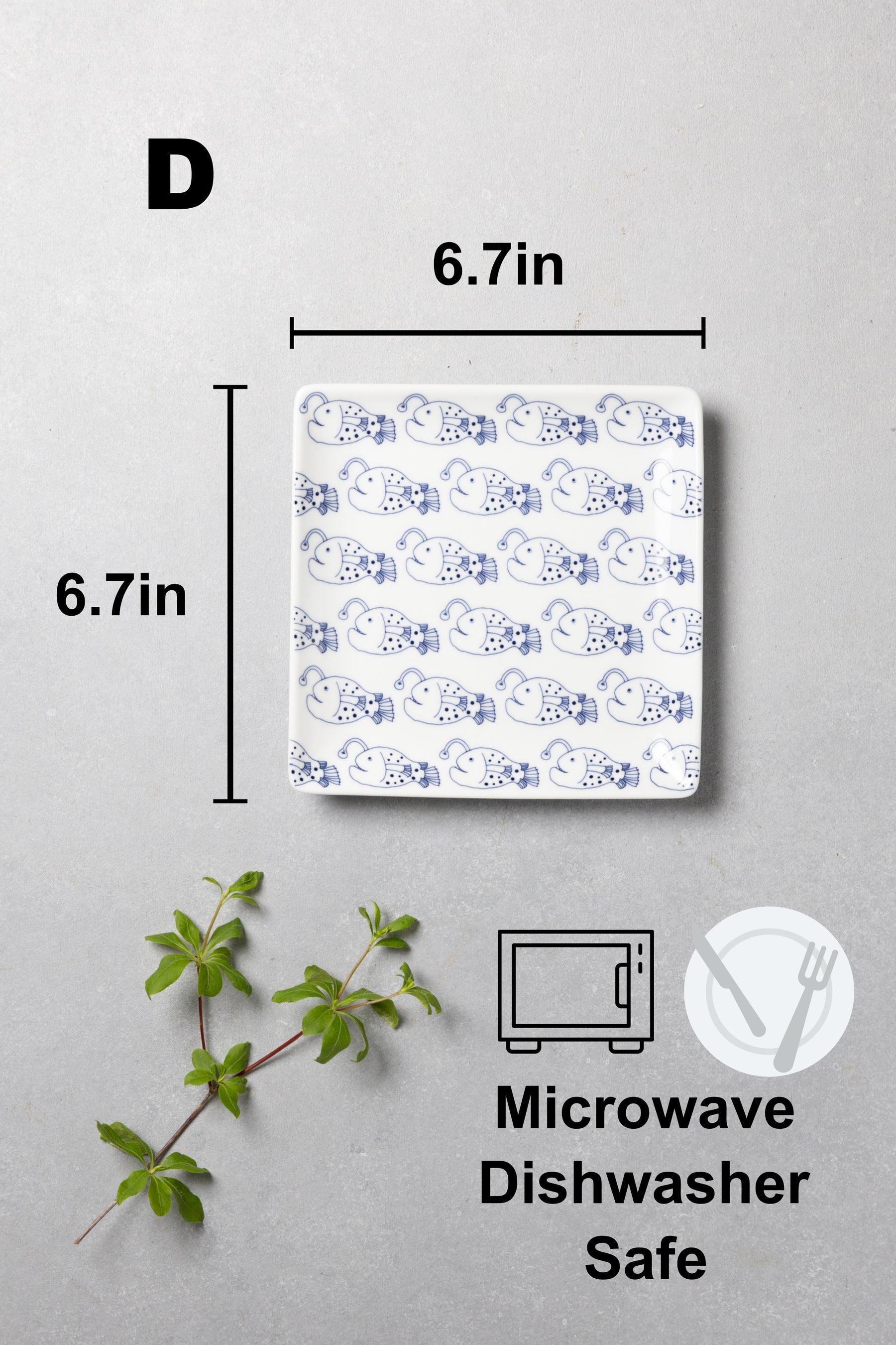 Modern Japanese Style Fish-Patterned Square Side Plates